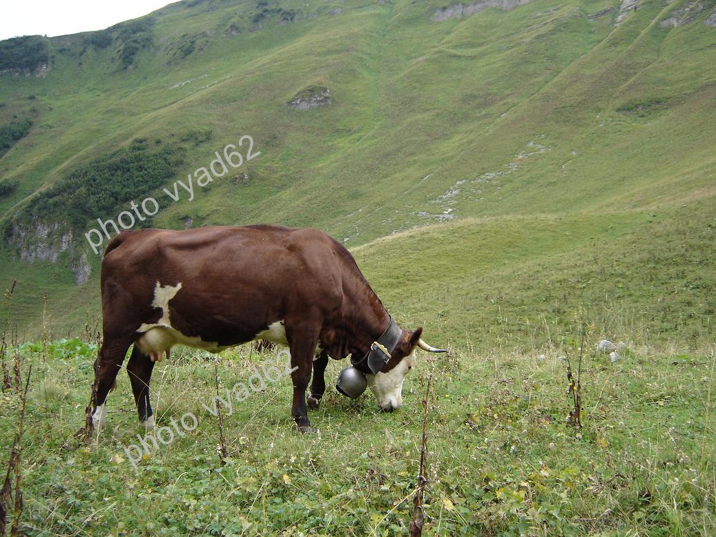 chablais - vache, race d'Abondance broutant l'herbe fraîche